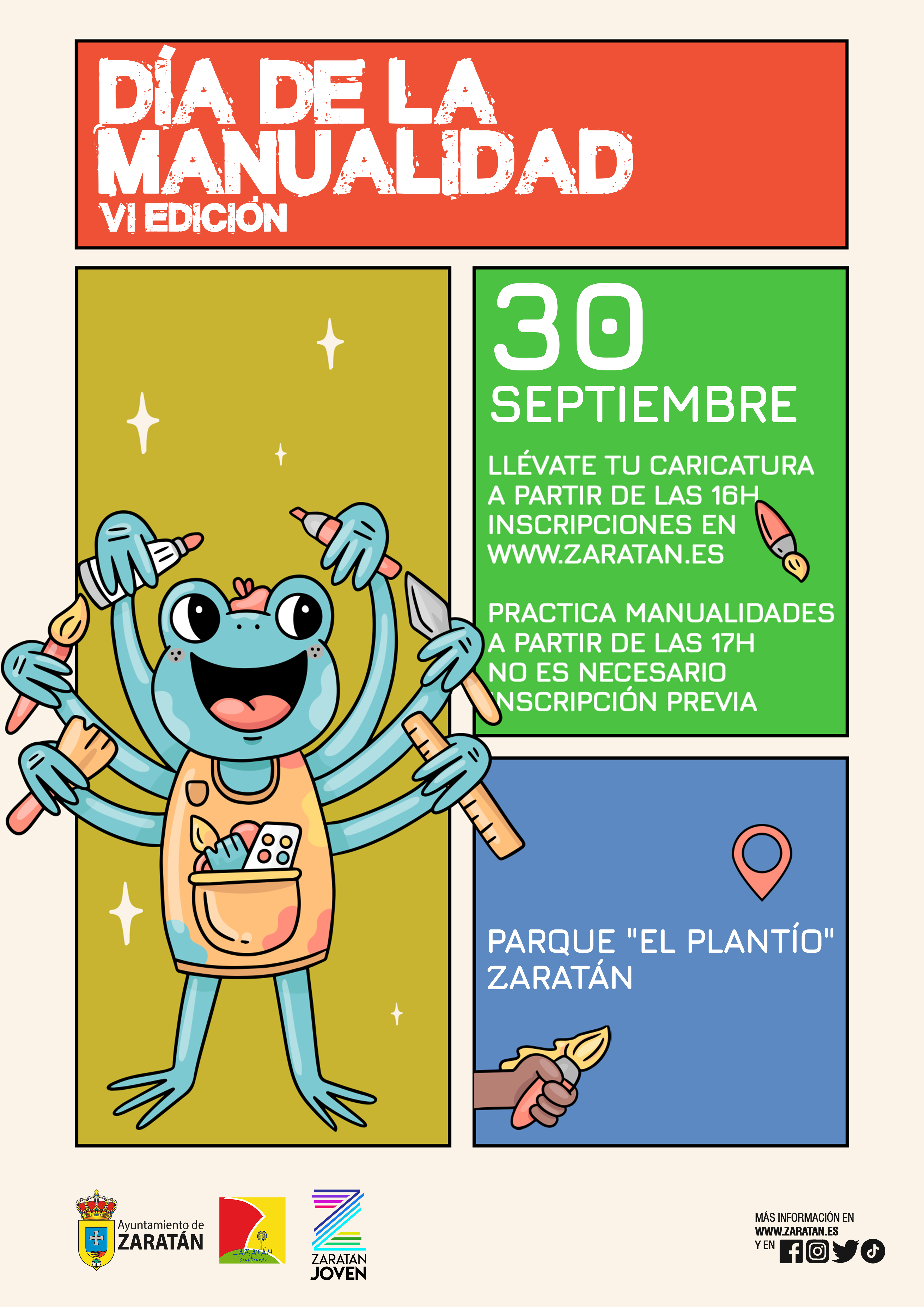 EL PRÓXIMO VIERNES 30 DE SEPTIEMBRE CELEBRAMOS EN ZARATÁN "EL DÍA DE LA MANUALIDAD". HABRÁ 8 PUESTOS DIFERENTES PARA REALIZAR MANUALIDADES Y ESTE AÑO ¡¡CARICATURISTAS!!