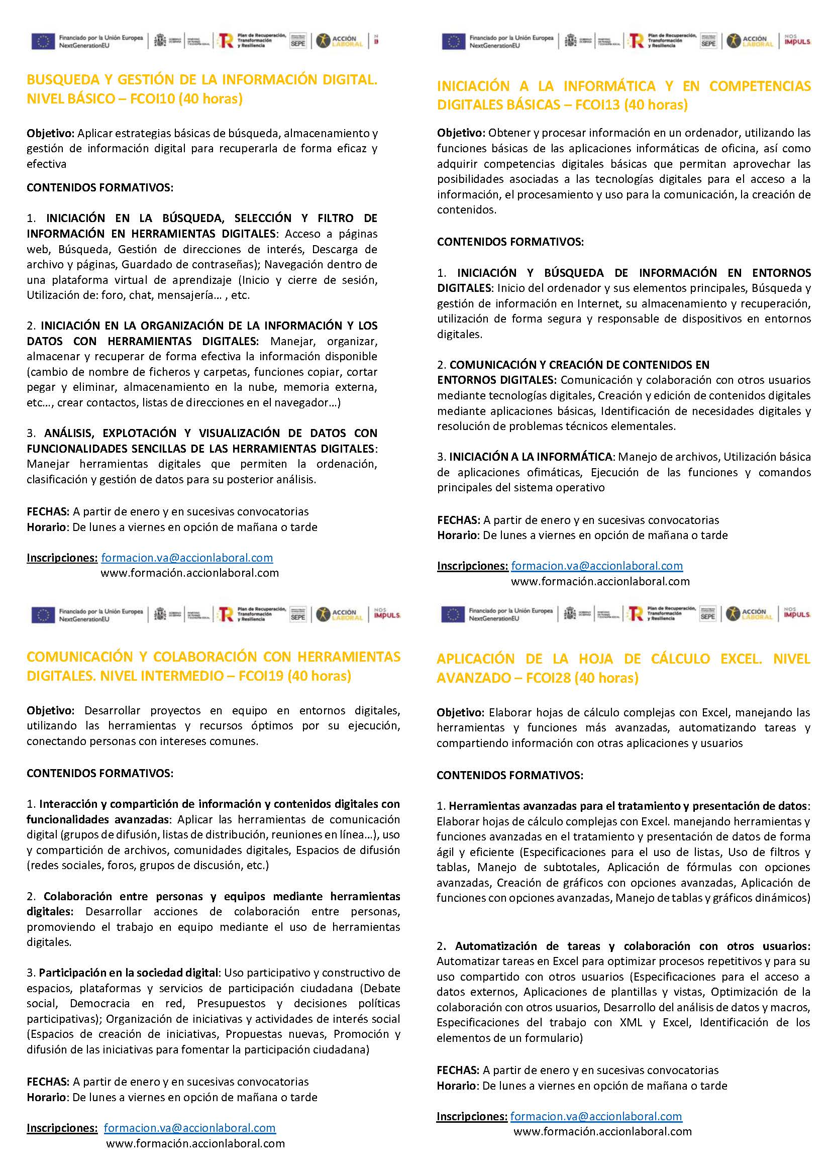 Os adjuntamos estos cursos por si es de vuestro interés.