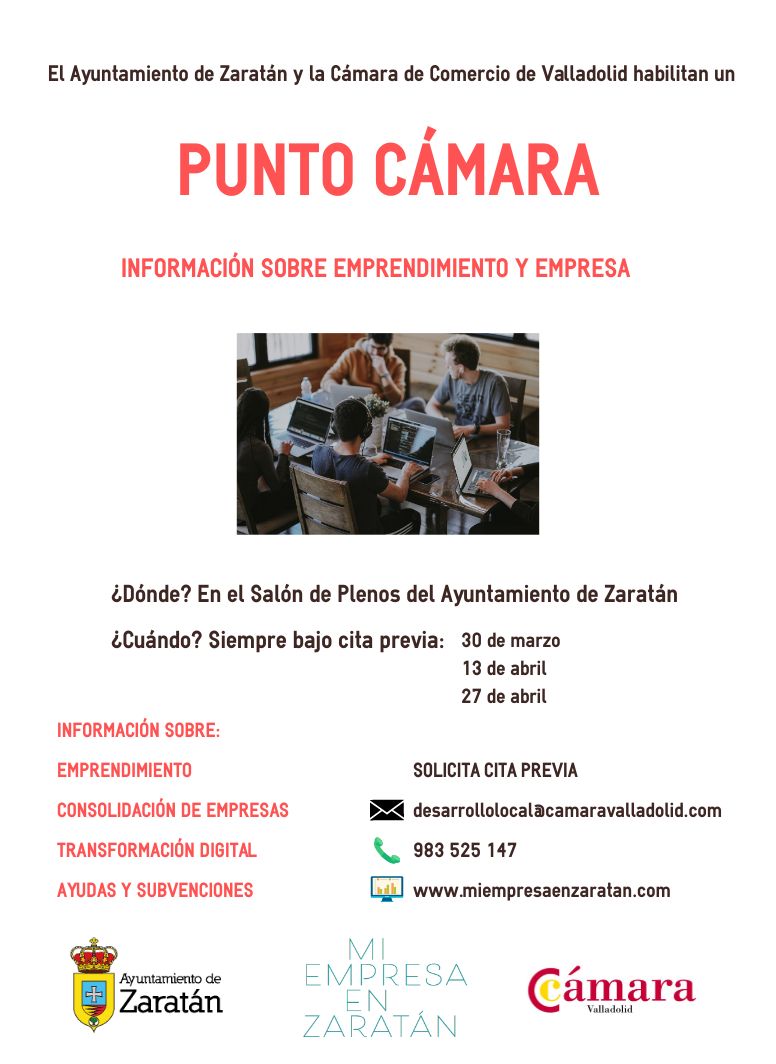 El Ayuntamiento de Zaratán, en colaboración con la Cámara de Comercio de Valladolid, abre el servicio PUNTO CÁMARA, consistente en la atención presencial en materia de empresa y emprendimiento.
