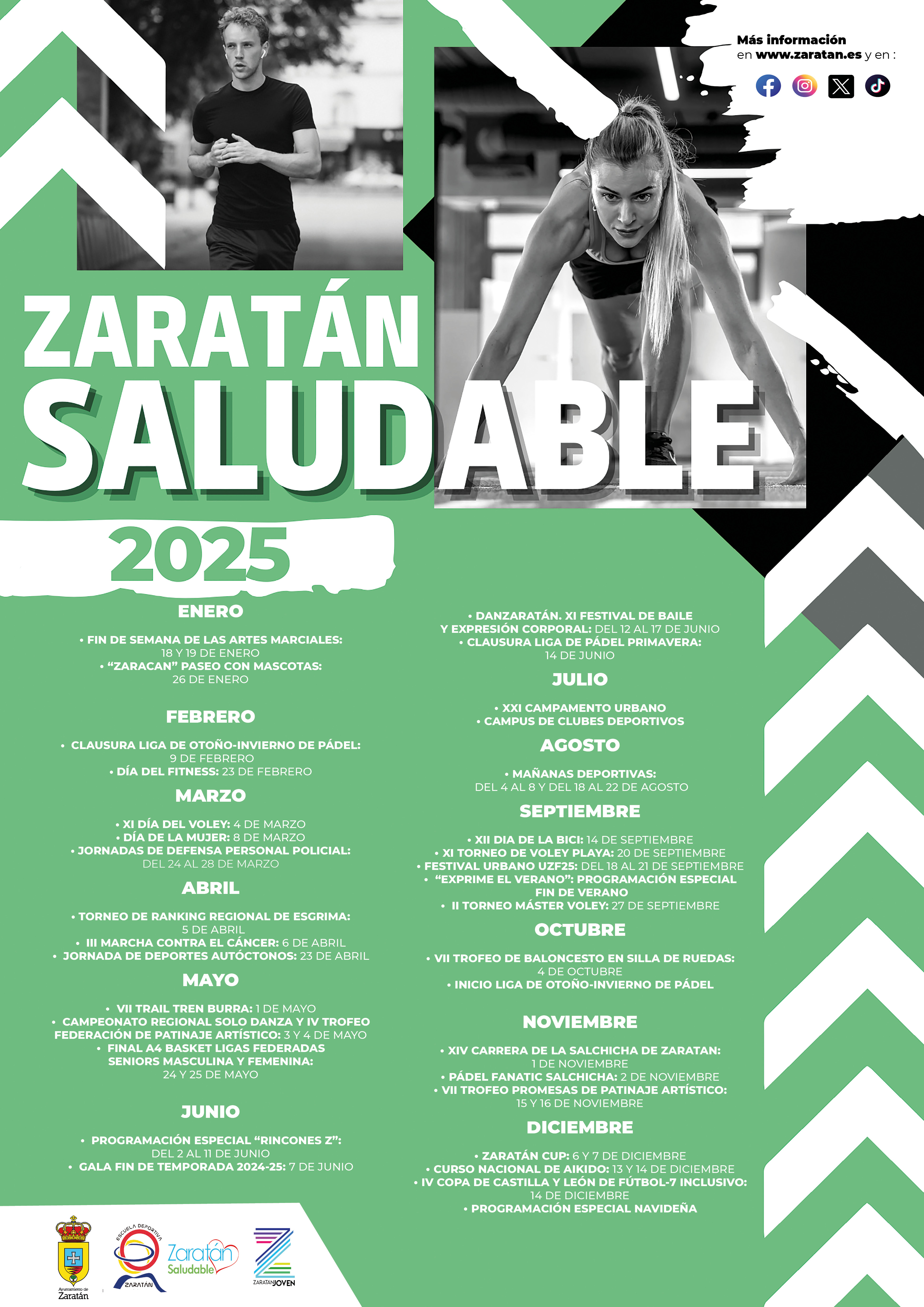 Zaratán se prepara para un nuevo año deportivo, y lo hace con un calendario de propuestas donde cada uno de los meses del año cuenta con una gran diversidad de citas a través de la iniciativa Zaratán Saludable. Desde la Concejalía de Deporte del Ayuntamiento se ha confeccionado una agenda novedosa donde niños y mayores podrán disfrutar de diferentes deportes y actividades físicas.