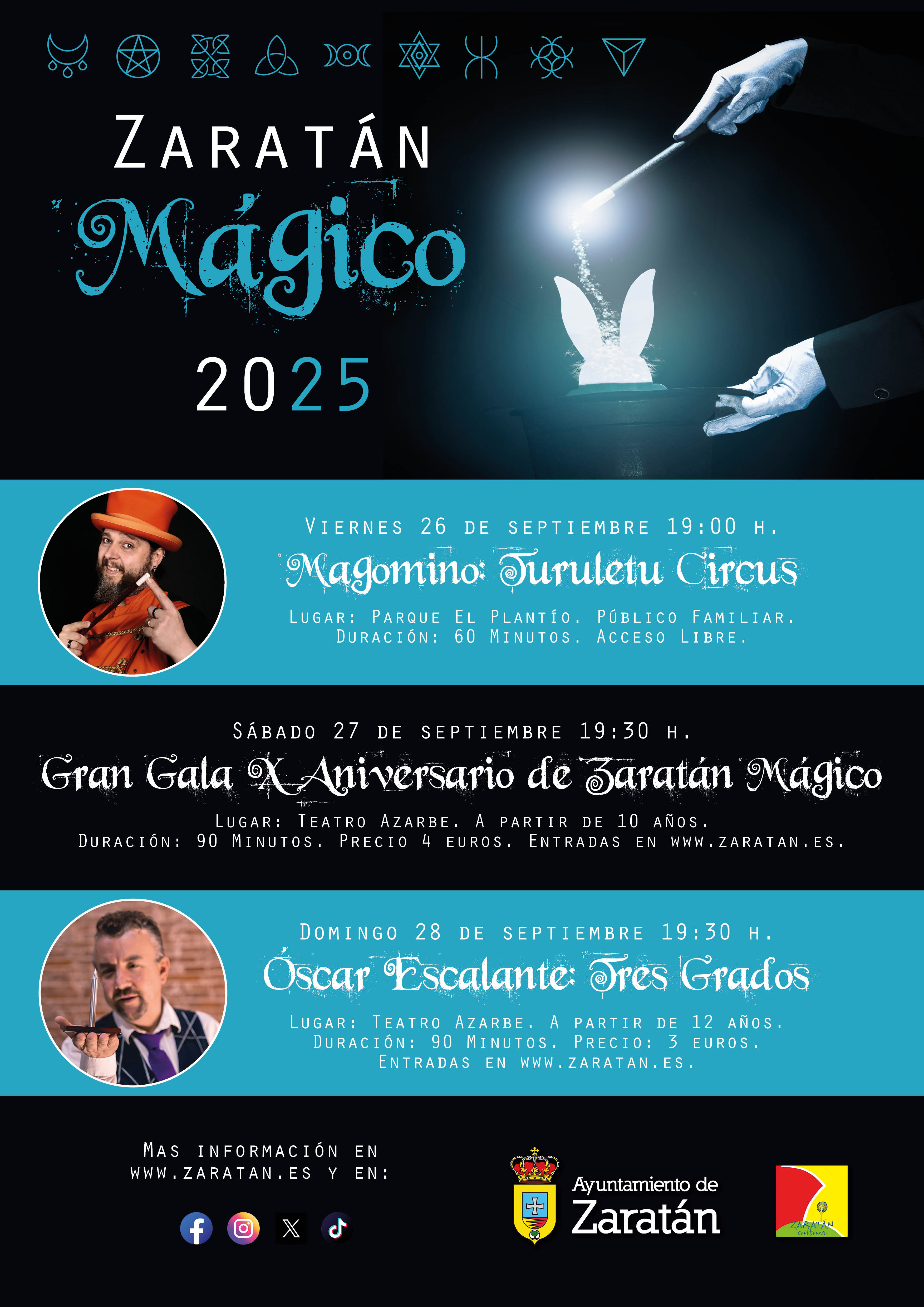 La magia vuelve a darse cita este mes de septiembre en la localidad de Zaratán, pues, como un hechizo que envuelve cada año el municipio, llega una nueva edición del festival de magia por excelencia; ‘Zaratán Mágico’, un evento que en su décima edición continúa sorprendiendo a los espectadores con cada uno de sus trucos durante tres jornadas, que en esta ocasión serán los días 26, 27 y 28 de septiembre.